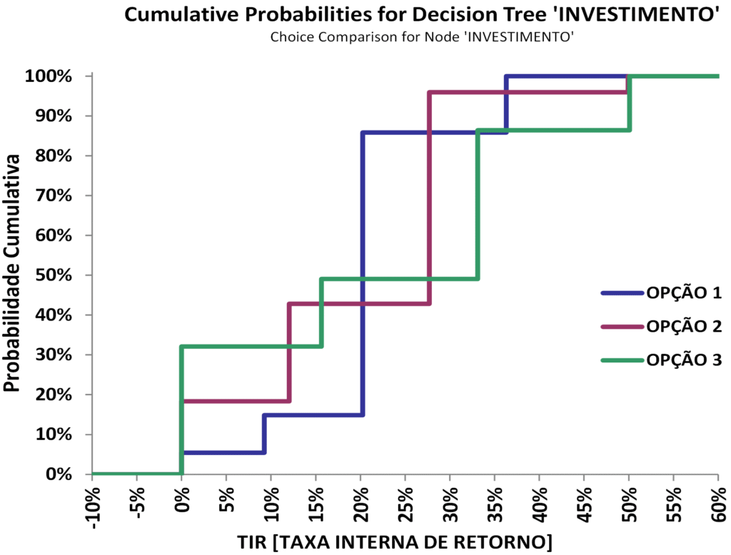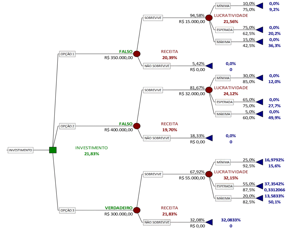 Fazemos uma análise de decisão de investimento consistente que leva em consideração opções, eventos, risco, otimização, retorno etc.